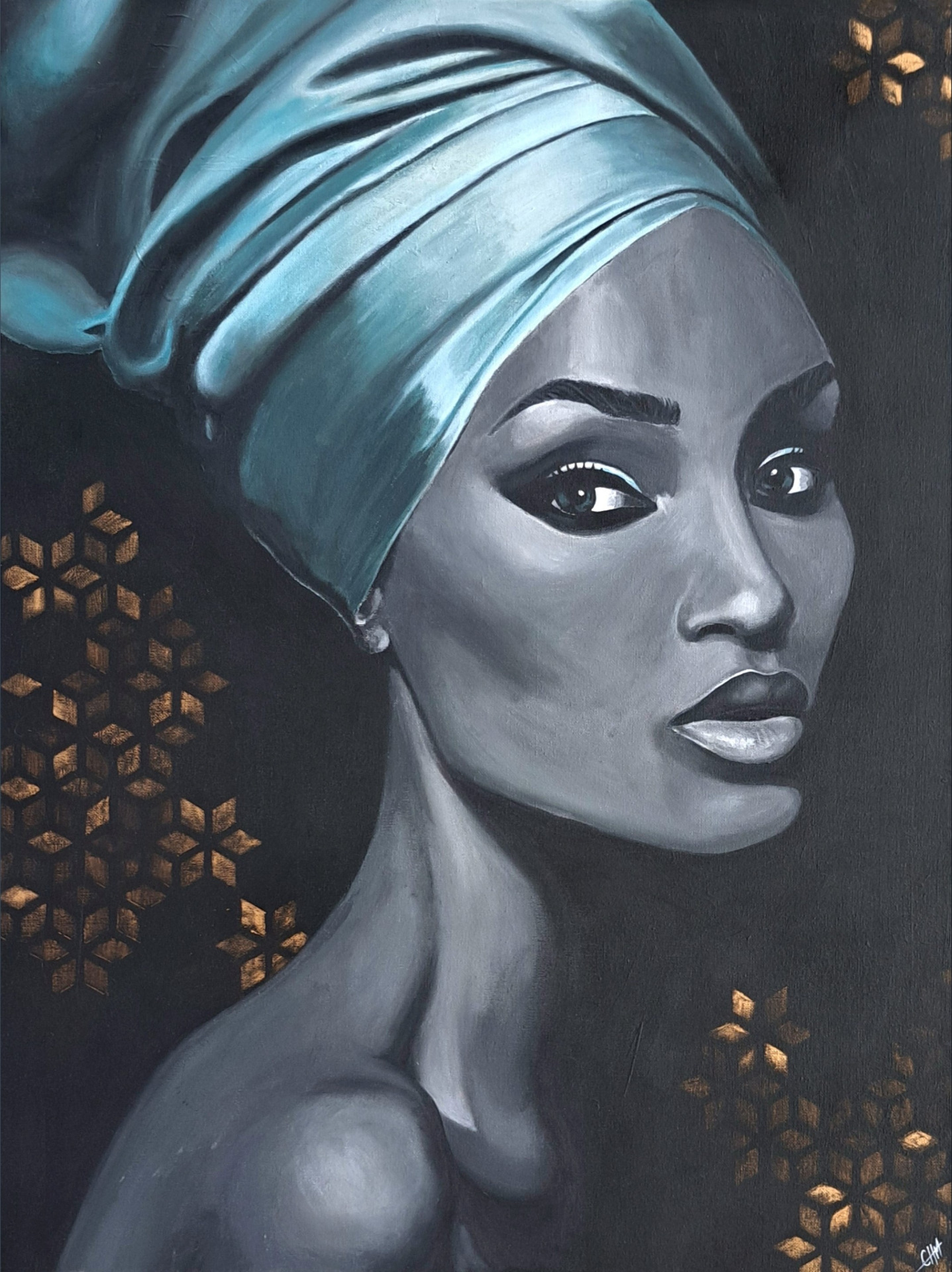 "Woman in Turquoise", 60x80cm (SOLGT)